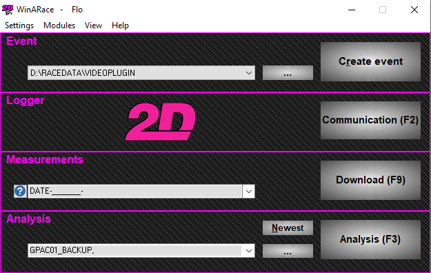 WinARace is the 2D main software for navigation to all other sub-software packages like WinIt or Analyzer: